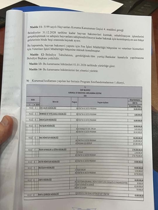 İŞTE İZMİT BELEDİYESİ 2026 YILI BÜTÇE KALEMLERİ