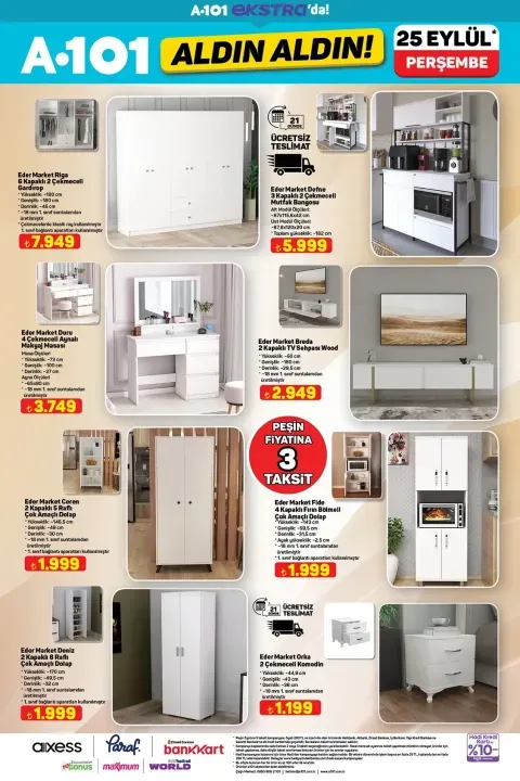 A101 25 Eylül aktüel ürünleri satışa çıktı! Her hafta Cuma’dan Perşembe’ye indirimli fiyatlarla sunulan Haftanın Yıldızları kataloğuna ek olarak, her Perşembe günü ise mağazalarda sürekli bulunmayan özel ürünlerin yer aldığı Aldın Aldın kataloğu müşterilerle buluşuyor.