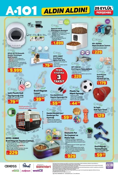 25 Eylül A101 aktüel ürünleri, teknoloji ve küçük ev aletlerinden mutfak gereçlerine, evcil hayvan ürünlerinden motosiklete kadar geniş bir yelpazede hazırlanmış durumda. İşte A101 Aldın Aldın kataloğunda bu hafta satışa çıkan ürünlerin tam listesi mağaza raflarında sizi bekliyor.