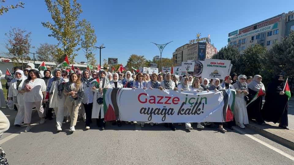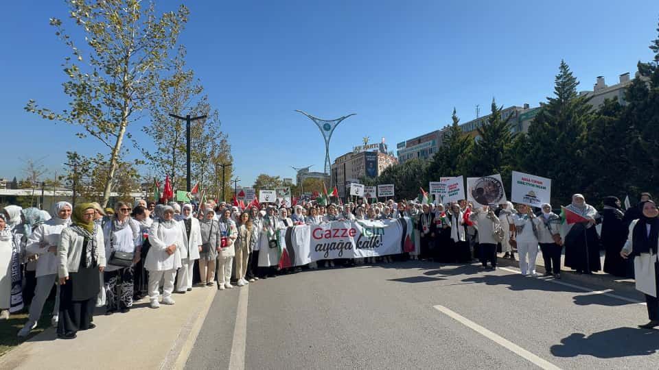 Biz; “Yaralıları mı kurtaracaktım, şehitleri mi taşıyacaktım ya da bir torba un mu bulmaya çalışacaktım? Yemin ederim eve tek bir torba un getirip, çocuklarımın karnının doyacağını bilsem, ölüme razı olurum” diyen Gazzeli annenin sesi olmak için, bu sesi dünyaya duyurmak için buradayız. Bu zulmü görmezden gelen herkese soruyorum: Kalbiniz nerede?