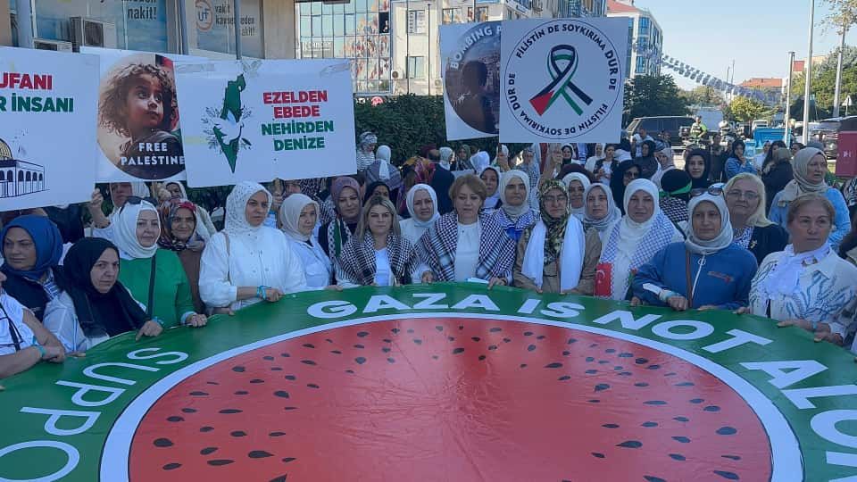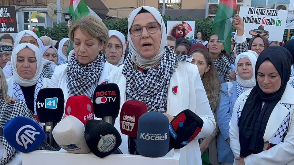 Hamdolsun,  Türkiye, Cumhurbaşkanımız Sayın Recep Tayyip Erdoğan’ın kararlılığıyla bu adaletsizlik karşısında da sessiz kalmadı. Sadece kendi ülkesinin vatandaşlarını değil, 13 ülkeden 101 vicdan sahibi gönüllünün de ülkelerine güvenle dönmelerini sağladı. Bizler de ablukayı delmek ve insanlık onurunu korumak için mücadele eden kahramanların ülkemize dönüşlerinde oradaydık. Bugün Türkiye’den tüm dünyaya tek bir şey söylüyoruz: Barış kadınla mümkündür. Slogan atmıyoruz; vicdanlarımızla haykırıyoruz.