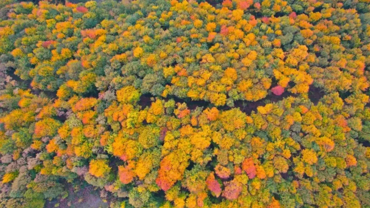 Samanlı Dağları'nın eteklerinde yer alan Yuvacık Aytepe bölgesi, mevsim geçişiyle birlikte sarı, turuncu ve kahverenginin en güzel tonlarına büründü. Bölgedeki ormanlık alanlar, ağaçların yarattığı renk geçişleriyle kartpostallık manzaralar sunarken, bu görsellik dron ile havadan da görüntülendi.