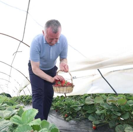 Kocaeli Büyükşehir Belediye Başkanı Doç.Dr. Tahir Büyükakın, Karamürsel Akçat Mahallesi’nde çilek hasadına katıldı. Büyükşehir’in “Alternatif Ürün Yetiştiriciliğini Destekleme Projesi” kapsamında yüzde 50 hibeli ekipman desteği alan üreticilerin yetiştirdiği çileklerin hasadını yapan Başkan Büyükakın, “Üreticimize verdiğimiz desteklerin karşılığını görmek bizleri gururlandırıyor. Emeğin değdiği her karış toprak bereketle buluşuyor. Akçat çileği sadece bir meyve değil, bölgenin kültürü ve emeğin simgesidir” dedi. Başkan Büyükakın’a; AK Parti Kocaeli İl Başkanı Dr. Şahin Talus, AK Parti Karamürsel İlçe Başkanı Mecit Erdoğan, Kadın Kolları Başkanı Elif Soykan ve Büyükşehir Belediyesi yetkilileri eşlik etti.