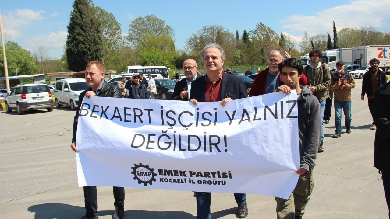 Kocaeli’de faaliyet gösteren Bekaert fabrikalarında devam eden grevde işçilerin direnişi sürüyor. Emek Partisi(EMEP) Genel Başkan Yardımcısı ve İstanbul Milletvekili İskender Bayhan, İzmit fabrikasında işçilerle bir araya geldi. Ziyarete EMEP İl Başkanı İlhami Şahbaz, Genel Başkan Yardımcısı Arzu Erkan ve parti yöneticileri de katıldı. Heyeti, Özçelik-İş Sendikası Kocaeli Bölge Başkanı Arif Çolak karşıladı.