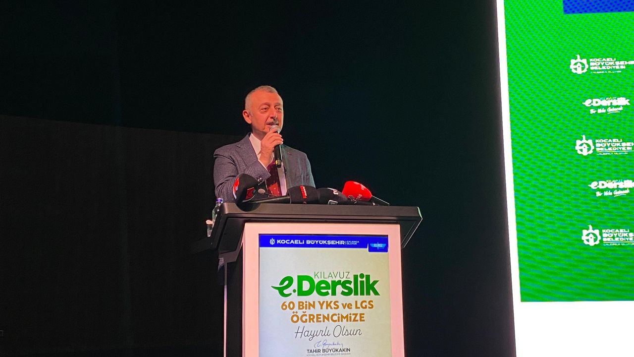 Program kapsamında konuşma yapan Kocaeli Büyükşehir Belediye Başkanı Tahir Büyükakın, “Salonun coşkusu muhteşem gençler enerjinizle doldu salon. E-dershanenin ne olduğunu arkadaşlarımız güzel bir skeçle anlattı ben size neler söylemeliyim diye düşündüm. Biliyorsunuz ben hayatımın yaklaşık 20 yılını üniversitede öğretim üyeliği yaparak geçirdim. Burada insan biriktiriyor ciddi tecrübeler elde ediyor. Ben hayatımın deneyimlerini öğrencilerle paylaşayım diye düşündüm. Sizleri gerçekten seviyorum. Aslında bu az önce skeçte oynayan kızımızın yaşadığı heyecanı ben çok yakın geçmişte yaşadım. Sizin ablanız olan 2 kızım var onların ikisi de üniversite öğrencisi onlarla bunları yaşadık. Ben odama gidiyorum konuşmayacağım diyen kızlarım oldu benim de. Ben bu projeyi yapalım derken onları da düşündüm işte.