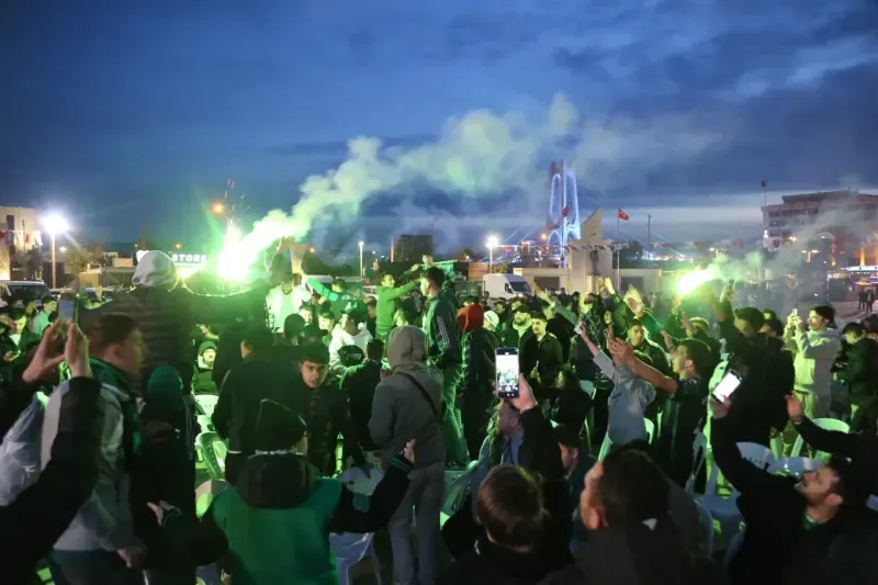 Taraftarın dev ekranda maçı izlediğini ve her gol sonrası yaşadığı coşkuyu paylaşan Büyükakın, takıma ve camiaya destek mesajı verdi.