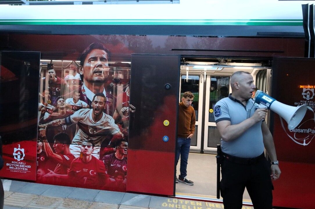 Kocaeli Büyükşehir Belediyesi, Kocaelispor Stadyumu’nda bu akşam saat 21.45’te oynanacak Türkiye-Gürcistan milli maçına özel olarak hazırlandı. Alikahya Stadyum Tramvay Hattını milli maça yetiştiren Büyükşehir Belediyesi, tramvay araçlarını da bu güne özel giydirdi. Kocaeli Büyükşehir Belediye Başkanı Doç. Dr. Tahir Büyükakın’ın Türkiye-Gürcistan maçına gidecek taraftarlar için ücretsiz olacağını duyurduğu tramvaylar, saat 17.00’den itibaren tüm taraftarları stada kadar ücretsiz bir şekilde taşıdı. Bunun yanı sıra yine Büyükşehir Belediyesi tarafından binlerce bayrağın dağıtımı da yapıldı.