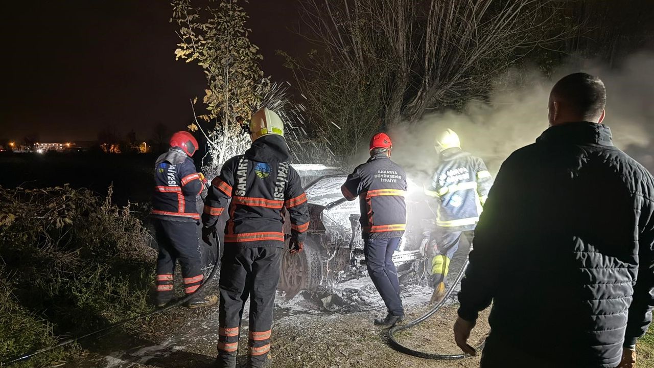 Sakarya'nın Akyazı ilçesinde tarladaki otomobilde çıkan yangın itfaiye ekipleri tarafından söndürüldü. Yanan otomobilden geriye ise sadece demir yığınları kaldı.