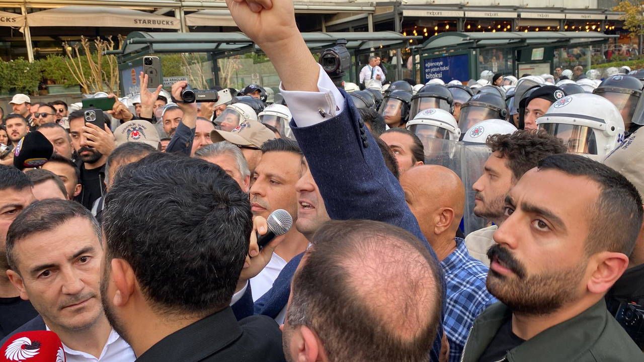 Özgür Çelik, açıklamasında şunları söyledi: “Biz burada bir metin okuyacaktık. TRT’nin önünde bazı taleplerimizi dile getirecektik. Yargılamalar canlı yayımlansın. Daha iddianamenin girişine bakıyorsun, seçim kazanmak suç sayılıyor. İBB Başkanlığı’na seçilmeyi suç sayıyor. Duruşmalar canlı yayınlansın, millet de gerçekleri görsün. Hepimizin vergileriyle ayakta duran bir kurum olan TRT, sanki bir siyasi partinin yandaş kanalı gibi davranmasın diyoruz. Bunları söylemek için buradayız. Niye engelliyorsunuz?”