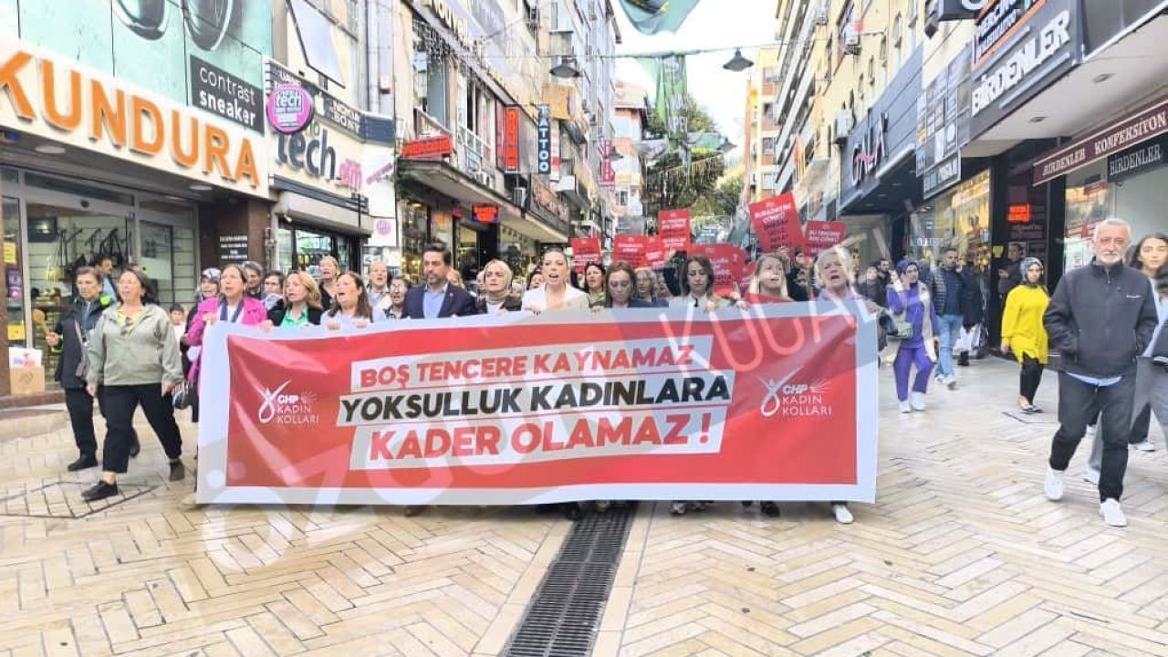 Cumhuriyet Halk Partisi üyesi kadınlar(  CHP) "Boş tencere kaynamaz, yoksulluk kadının kaderi olamaz" sloganıyla CHP İl Binası önünde toplanarak ekonomik ve sosyal haklar talebiyle Savri Yalım Parkı'na yürüdü. Sabri Yalım Parkı'nda son bulan yürüyüş sonrasında CHP İl Kadın Kolları Başkanı Merve Tüysüz basın açıklaması yaptı. Tüysüz, açıklamasında şu ifadeleri kullandı: "Bu ülkede artık yoksulluk sadece cebimizde değil, umutlarımızda.