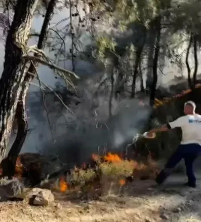 Yangın, Geyve ilçesinde ormanlık alanda çıktı. Henüz bilinmeyen bir sebepten dolayı çıkan yangın kısa sürede büyüdü. Durumun haber verilmesi üzerine bölgeye ekipler sevk edildi. Orman yangınına sadece ekipler değil, vatandaşlar da kendi imkanlarıyla müdahale etti. Yoğun dumanla kaplanan bölgede bir vatandaşın, ormanlık alandaki çukurda biriken suyu pet şişeyle doldurup alevlere döktüğü anlar kameralara yansıdı. Elinde sadece bir pet şişe olan vatandaşın defalarca su taşıyarak yangına müdahale etmeye çalışması, dikkatlerden kaçmadı.