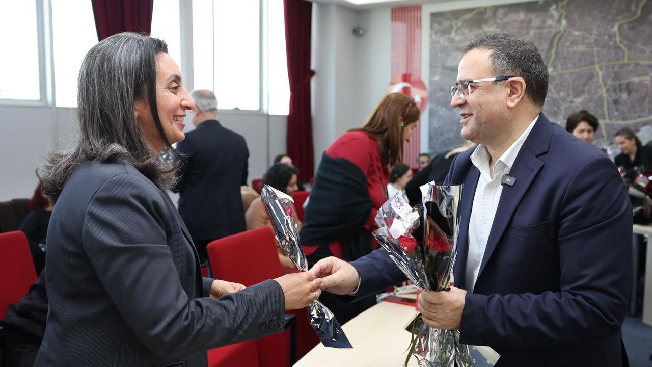 “Dünya Emekçi Kadınlar Günü münasebetiyle belediyemizde düzenlediğimiz programda kıymetli kadın çalışma arkadaşlarımızla bir araya geldik. Toplumun her alanında emekleriyle hayatı güzelleştiren, üreten ve fedakârlıklarıyla geleceğimizi şekillendiren kadınlarımızın yanında olmaya devam edeceğiz.”