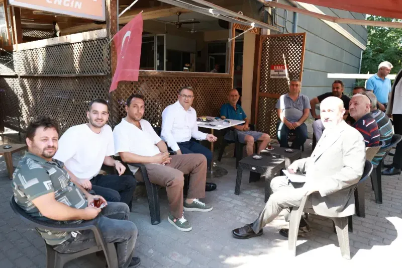 Muhtarlıkta yapılan görüşmenin ardından beraberindeki heyet ile birlikte çeşitli ziyaretlerde bulunan Başkan Gökçe, Canan Caddesi’nde esnaflarla bir araya geldi.
