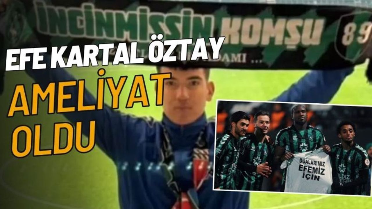 Trendyol 1. Lig’in 23. haftasında Kocaelispor-Amed Sportif Faaliyetler maçı sırasında tribünden düşerek ağır yaralanan genç futbolcu Efe Kartal Öztay (16), bugün ameliyat edildi. Geçtiğimiz hafta sonu Kocaeli Stadyumu'nda oynanan karşılaşmanın 65. dakikasında Kuzey Kale Arkası tribününden dengesini kaybederek yaklaşık 13 metre yükseklikten düşen Öztay, Kocaeli Şehir Hastanesi'nde yoğun bakım ünitesinde tedavi altına alınmıştı. Kentteki spor camiası ve vatandaşlar, Nusretiyespor altyapısında forma giyen genç futbolcunun sağlığına kavuşması için dualar ederken, bugün ameliyatının gerçekleştirildiği öğrenildi.