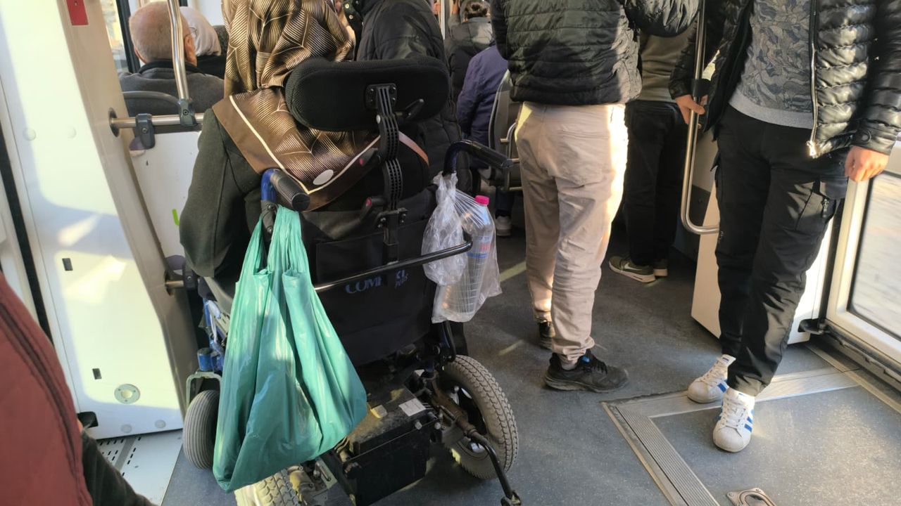 İzmit’te bugün kent içi ulaşımda yaşanan bir durum, engelli yurttaşların karşılaştığı sorunları bir kez daha gözler önüne getirdi. Tekerlekli sandalye kullanan bir engelli yurttaş, tramvaya binmesine rağmen kendisi için ayrılan alanda yolculuk yapamadı. Tramvay içinde engelliler için ayrılan bölümde çok sayıda yurttaşın ayakta durduğu görüldü.