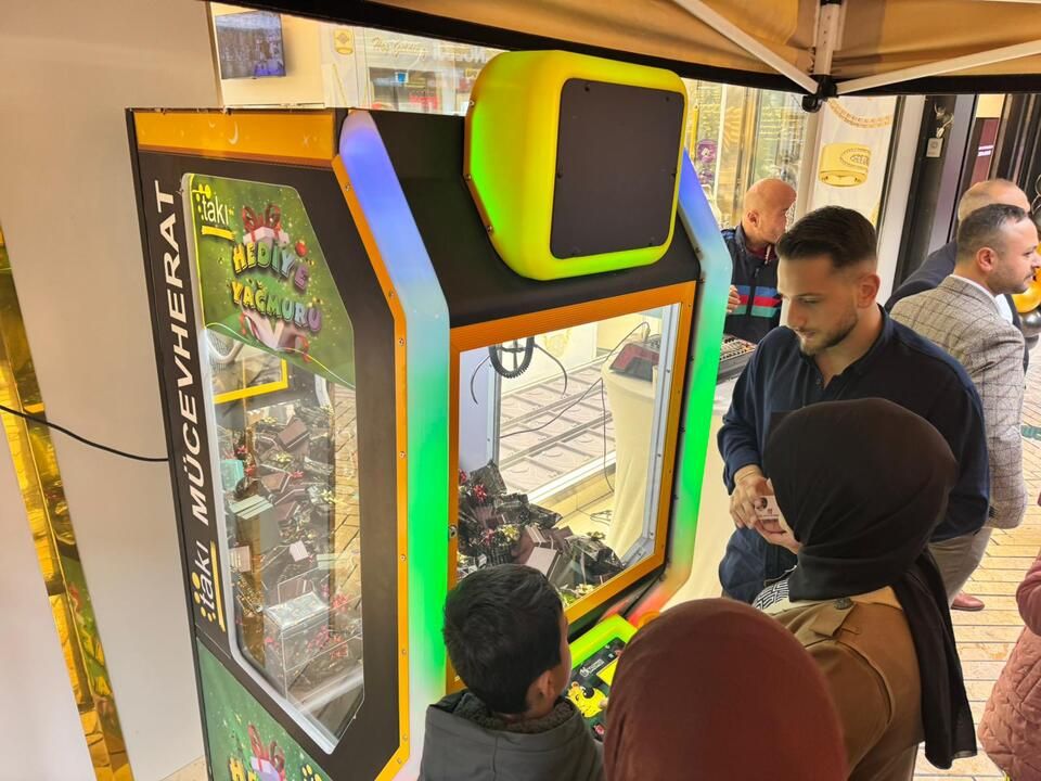 İzmit Fethiye Caddesi'nde bugün ilginç bir açılışa tanıklık etti. Takı Mücevherat mağazasının açılışında altın hediyeli oyun oynatıldı. Mağaza önüne konulan oyun makinesine para atan vatandaşlar konsol aracılığı ile çoğu altın olan mücevherleri yakalamaya çalıştı. Oyun oynamak isteyen vatandaşlar makinenin önünde uzun kuyruklar oluşturdu. Bedava takı için yağmurlu havada kuyruğa giren vatandaşlara çay ikram edildi.