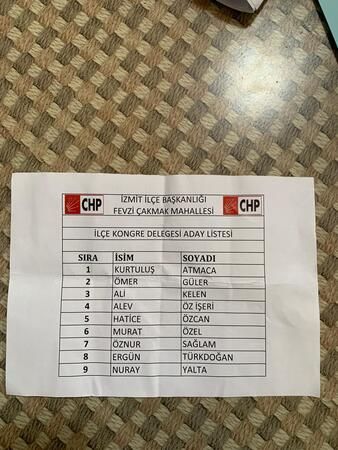 FEVZİ ÇAKMAK MAHALLESİ DELEGE ADAYLARI