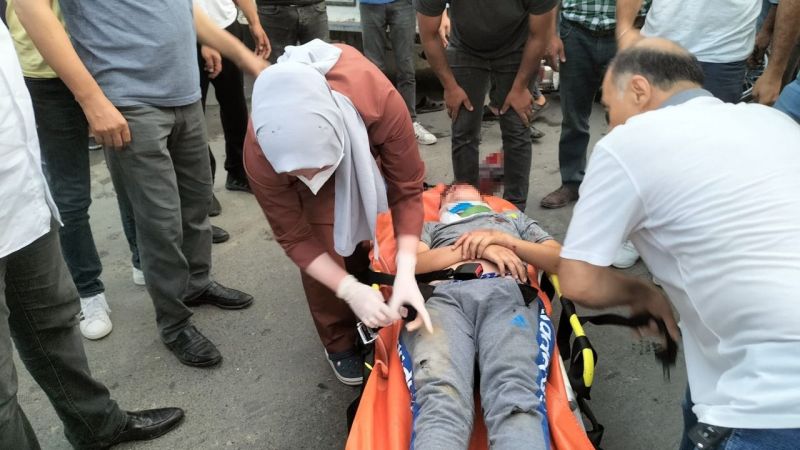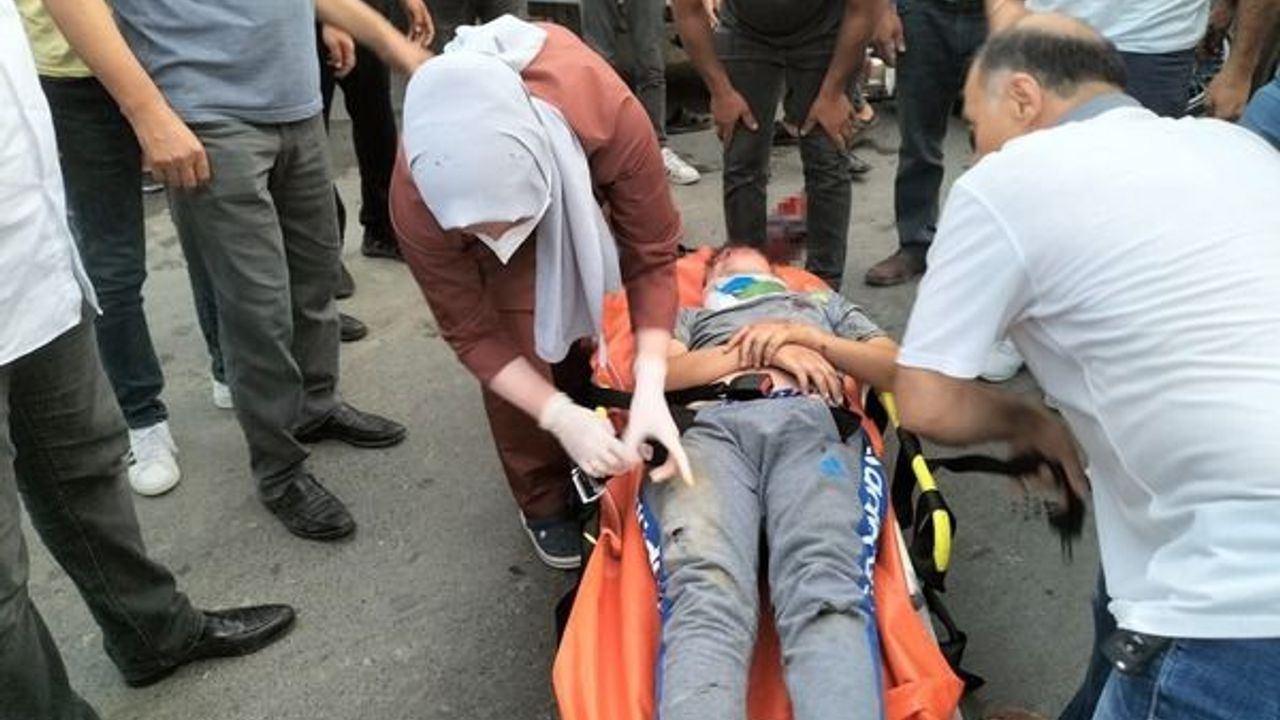 Kazada savrularak yere düşen motosiklet sürücüsü ile arkasındaki A.B. (13) yaralandı.