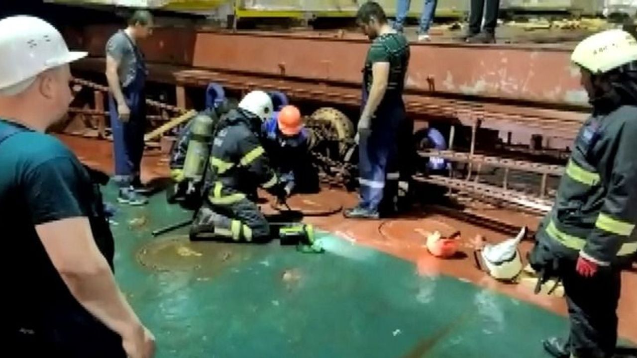 Kocaeli’nin Derince Limanı’na gelen Rus bandıralı geminin taşıdığı mekanik cihazlarda yangın çıktı. İtfaiye ekiplerinin yangını söndürmek için geminin kapaklarını açıp daracık alana girerek verdiği mücadele saniye saniye kameralara yansıdı. İşte o anlar...