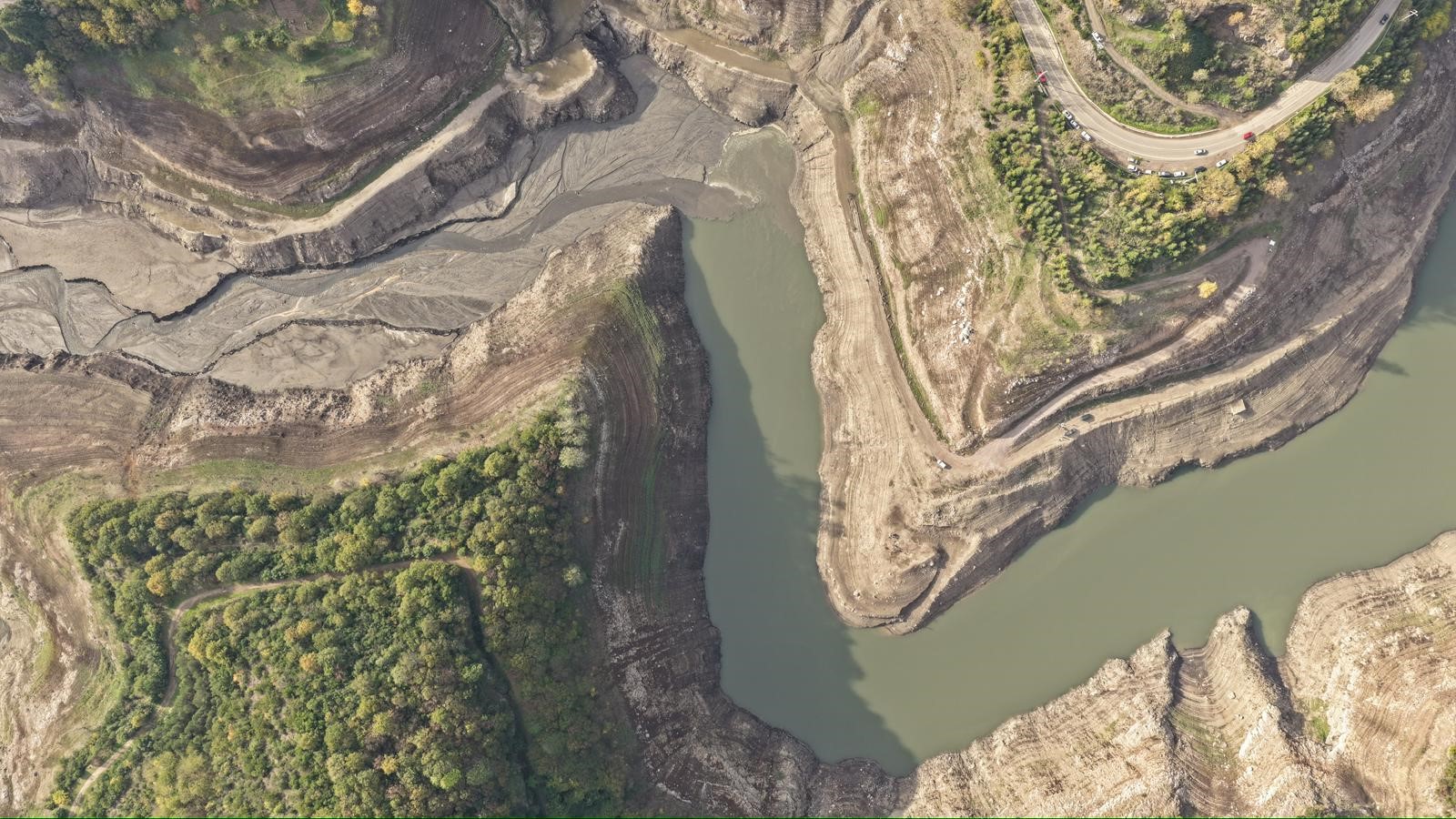Düşük su seviyesi nedeniyle baraj havzasındaki eski köprü yeniden görünür hale geldi.