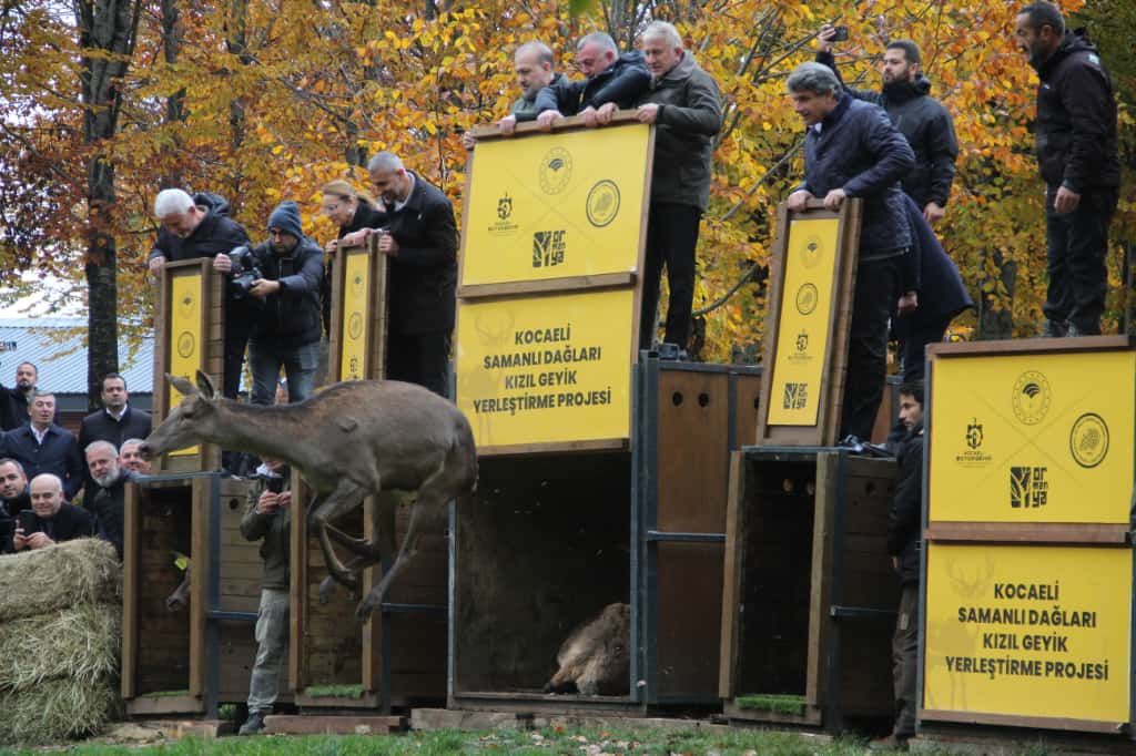 Kocaeli Büyükşehir Belediyesi(KBB) yaban hayatını koruma ve geliştirme hedefiyle yürüttüğü çalışmaları kapsamında ekolojik hayata olumlu yönde katkı sunuyor. İlk aşamada 15 kızıl geyiği doğaya kazandırarak başlayan yolculuk, bugün 7 geyiğin daha doğaya salımı ile devam etti. Gelecek ay 8 geyik daha doğaya salınarak bu yılki planda olan 15 kızıl geyik salım işlemi tamamlanmış olacak. Proje tamamlandığında 40 Kızıl Geyik doğaya salınmış olacak.