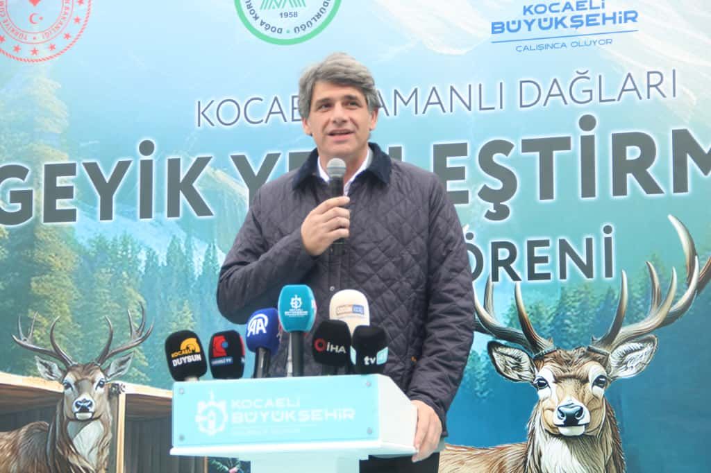 Geyik salım öncesinde konuşan Kartepe Belediye Başkanı Mustafa Kocaman proje için teşekkürlerini sunarak sözü KBB Başkanı Tahir Büyükakın'a bıraktı. Başkan Büyükakın ise konuşmasında şu ifadeleri kullandı: "Doğada, ekosistemde bir şeyi başka bir şeyle birlikte ayakta tutan bir döngü vardır. Mesela, “Ağaçlardan dökülen yaprakları kötü görünmesin diye altlarından toplayalım” dediğinizde, oradaki ekosisteme zarar vermiş olursunuz. Çünkü o döngünün devam etmesi gerekir.