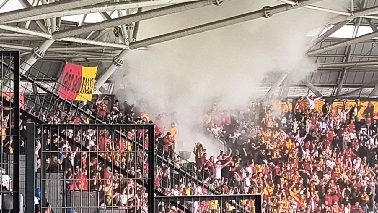 Bugün Turka Araç Muayene Kocaeli Stadyumu'nda oynan Kocaelispor - Göztepe maçında Göztepe taraftar grubu "Yalı" stattan ele geçirdiği yangın tüpünü deplasman tribününde sıktı.