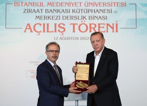 Cumhurbaşkanı Recep Tayyip Erdoğan, İstanbul Medeniyet Üniversitesi Ziraat Bankası Kütüphanesi ve Merkezi Derslik Binası Açılış Töreni'ne katıldı. Törende konuşan Cumhurbaşkanı Erdoğan, “İlim ve irfan davamızı dünya çapında en iyi şekilde temsil etmek, ‘üniversite medeniyettir' ifadesini hayata geçirmek için samimiyetle çalışan rektörümüzü ve hocalarımızı tebrik ediyorum. İstanbul Medeniyet Üniversitemize marka değerinin önemli katkı sağlayacağına inandığım yeni bir eseri daha hizmete sunmak için buradayız. Ziraat Bankamızın desteği ile tamamlanan kütüphanemizin merkezi derslik binasının hayırlı olmasını diliyorum. Bünyesindeki 1 milyon cilt basılı kitabı ve aynı anda 3 bin kişiye hizmet verecek fiziki büyüklüğü ile ülkemizin en büyük üniversite kütüphanesini açıyoruz. Halihazırda ülkemizin en büyük kütüphanesi Ankara'daki Beştepe Cumhurbaşkanlığı Külliyesi içinde yer alan, 5 milyon ciltlik kitap kapasitesine sahip Millet Kütüphanesi'dir. Buranın da haftanın her günü 24 saat açık olacağını, ikramların yapılacağını öğrenmekten memnuniyet duydum” dedi.