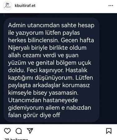 Karabük Üniversitesi öğrencileri tarafından açılan itiraf sayfasında Afrikalı göçmenlerle ilgili bir çok konuda öğrenciler anonim şekilde itiraflarda bulundu. Öğrencilerin itiraflarına göre Afrikalı siyahiler ile birliktelik yaşan Türk erkek ve kız öğrenciler bir çok cinsel yolla bulaşan hastalıklara yakalandı. Öğrencilerin bazıları HPV virüsü kaparken bazıları da HIV (AİDS) şüphesiyle hastaneye gittikleri belirtildi. Karabük Üniversitesi öğrencilerinin itiraflarının kar topu etkisiyle giderek büyümesi sonrası bu olay sosyal medyada gündem oldu. Afrikalı göçmenlerle cinsel birliktelik yaşayan Türk öğrenciler, itiraflarında şu ifadelere yer verdiler;