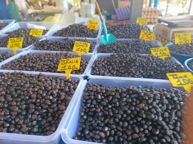 İzmit Doğu Kışla alanında kurulan Perşembe Pazarı, zeytinci tezgahlarıyla dikkat çekiyor. Pazardaki zeytin çeşitliliği ve fiyatlar, müşterilerin ilgisiyle karşılaşıyor. Zeytinin kilosu, pazarda 100 liradan başlayarak 200-250 liraya kadar değişen fiyatlarla satılıyor. Ayrıca zeytinin bolluğu da pazardaki canlılığı artıran unsurlardan biri.