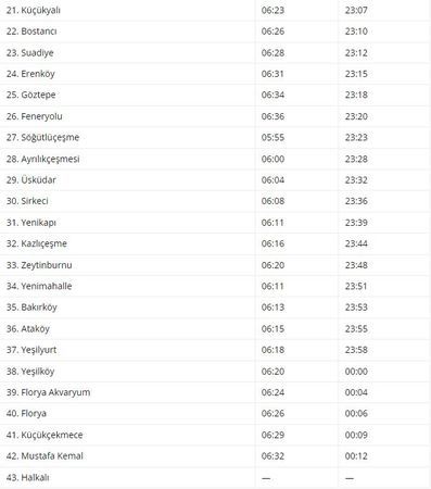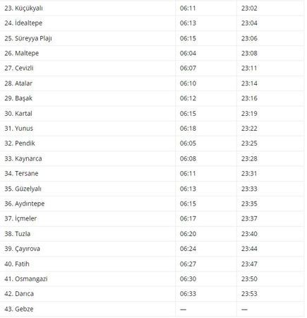 Bu duraklardan 15 tanesi Avrupa Yakası’nda yer alırken geri kalan 28 durak ise Anadolu Yakası’ndadır.