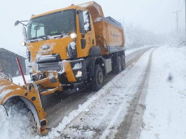 Kar küreme bıçaklı kamyonlarıyla ana arterlerdeki kar birikintilerini temizleyen ekipler, ayrıca yollarda yaşanabilecek buzlanmanın önüne geçebilmek için tuzlama çalışmaları da yaptı.