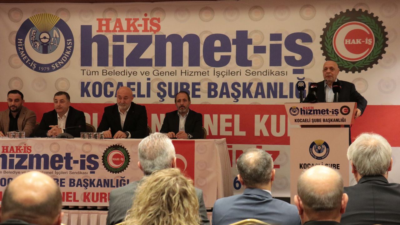 HAK-İŞ Genel Başkanı Mahmut Arslan, İzmit’te düzenlenen Hizmet-İş Sendikası Kocaeli Şubesi 4. Olağan Genel Kurulu’nda konuştu. Arslan, konuşmasında hem küresel gelişmelere hem de Türkiye’deki çalışma hayatına ilişkin değerlendirmelerde bulundu.