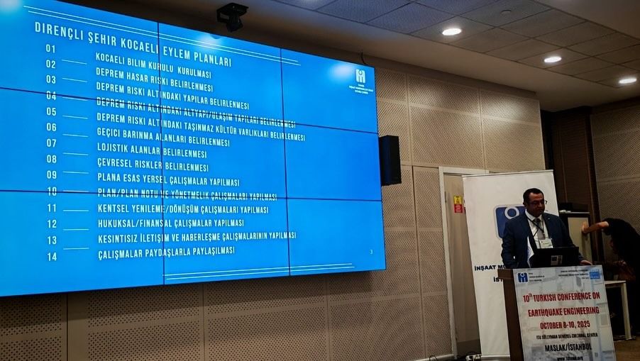 İMO Kocaeli Şube Başkanı Ali Akgün, Kocaeli Büyükşehir Belediyesi ve Kocaeli Üniversitesi ile ortak yapılan Kocaeli İli Yapı Stoku Envanter Çalışmasını yerli ve yabancı akademisyenlere sunarak bilgi paylaşımında bulundu.
