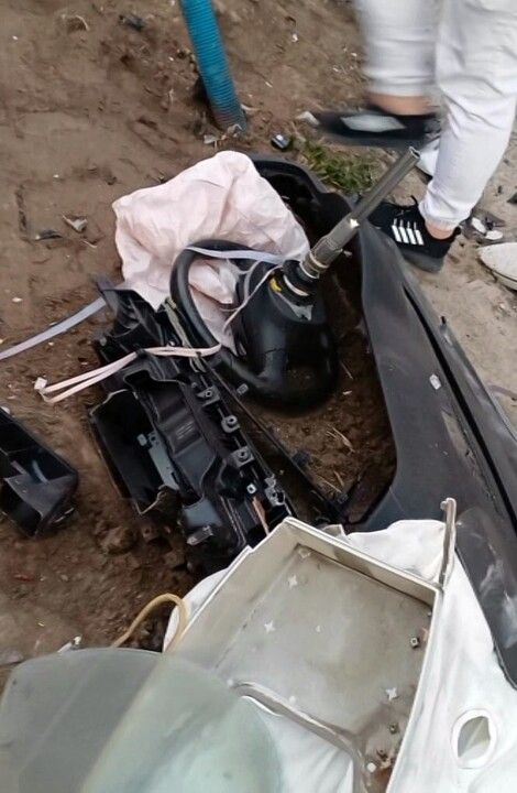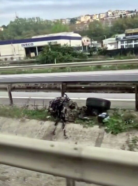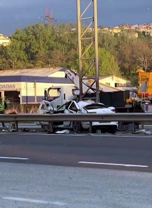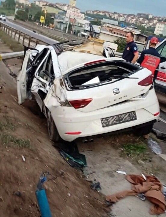 Kontrolden çıkan otomobil, orta refüje girerek bariyerleri biçti ve aydınlatma direğini devirerek paramparça oldu. Çarpmanın etkisiyle sürücü E.E.E. araçtan dışarı fırladı ve ezilen otomobilin altına sıkıştı. Hurdaya dönen araç, adeta kağıt gibi ezildi, direksiyon, motor ve konsol gibi parçalar yola savruldu.