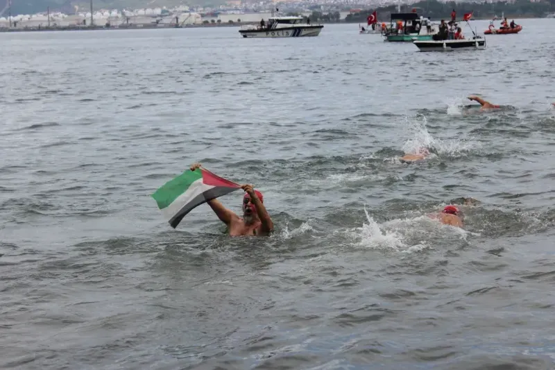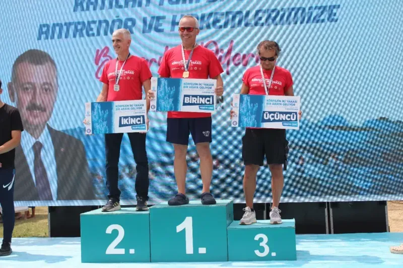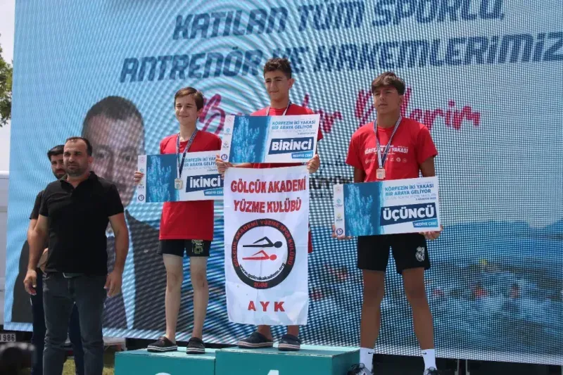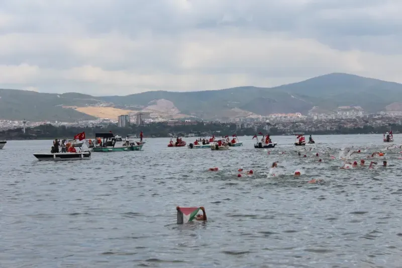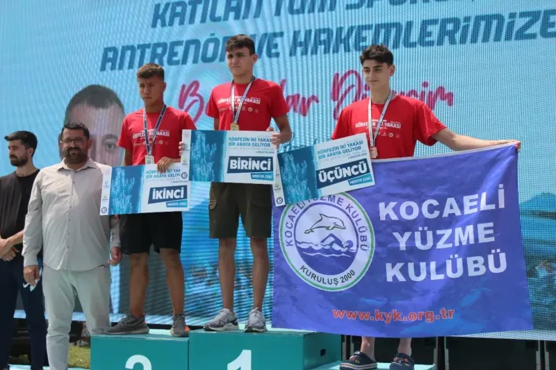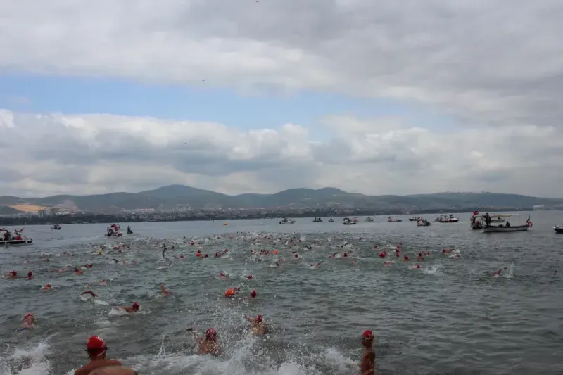 Kocaeli Büyükşehir Belediyesi öncülüğünde, Gölcük Belediyesi, Türkiye Yüzme Federasyonu ve Kocaeli Gençlik ve Spor İl Müdürlüğü işbirliğinde düzenlenen Ulusal Açık Su Yüzme Yarışları'nın üçüncüsü bugün yoğun katılımla yapıldı. 'Körfezin iki yakası bir araya geliyor' sloganıyla iki yıldır büyük katılımla gerçekleştirilen etkinlikte 11-65+ yaş aralığında toplam 32 kategoride sporcular yarıştı. Türkiye'nin dört bir yanından en küçüğü 11 en büyüğü 75 yaşında olmak üzere toplam 343 yarışmacı katıldı. Gölcük Değirmendere Çınarlık Meydanı'ndan saat 10.00'da başlayan yarış, Derince Sahili'nde tamamlandı. 2 bin 600 metre mesafesi olan yarışma ile körfezin her iki yakası sporcuların heyecanlı yarışına sahne oldu. Ayrıca bir yüzücü, Filistin'e destek amacıyla Filistin bayrağı ile yüzdü. Deniz Limanı Şube Müdürlüğü'ne bağlı polis ekipleri de herhangi bir olumsuzluk yaşanmaması adına hazırda bulundu.