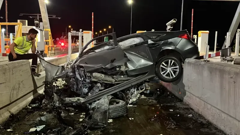 Kaza, saat 20.00 sularında Kuzey Marmara Otoyolu’nun İzmit ilçesi Durasan Mahallesi gişelerinde meydana geldi. İstanbul istikametine doğru seyir halinde olan bir otomobil, sürücüsünün direksiyon hakimiyetini kaybetmesi sonucu gişelere çarptı.