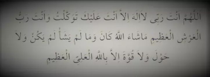 اللهم انت ربي لا اله الا انت عليك توكلت وانت رب العرش العظيم، ماشاء الله كان وما لم يشأ لم يكن ولا حول ولا قوة الا بالله العلي العظيم