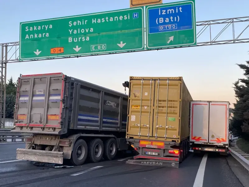 Kaza, saat 19.00 sıralarında TEM Otoyolu'nun Ankara istikametinde Derince ilçesi Çınarlı Mahallesi mevkiinde meydana geldi. Edinilen bilgiye göre, H.Ö. idaresindeki 14 ACA 638 Mitsubishi marka kapalı kasa kamyonet, A.G. yönetimindeki 06FCE 783 Mercedes marka tır ve İ.Ö. hakimiyetindeki 06 CON 698 plakalı damperli tır zincirleme kazaya karıştı. Meydana gelen kaza nedeniyle trafik dururken, yaralanan olmadı. İhbar üzerine olay yerine jandarma ekipleri sevk edildi. Kısa sürede olay yerine gelen ekipler, trafik güvenliğini sağladı. Kaza anı ise araç içi kamerasına yansıdı.