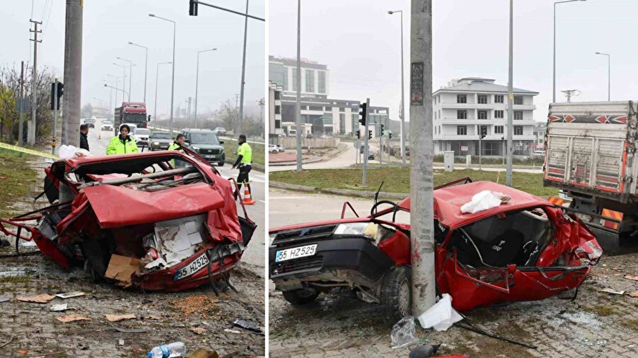 Edinilen bilgilere göre, Kenan Eral’ın kullandığı 19 UC 108 plakalı kamyon, Vezirköprü Devlet Hastanesi kavşağında ışıkta bekleyen Makbule Çağla Gümüş yönetimindeki 55 HZ 525 plakalı otomobile çarptı. Şiddetli çarpmanın etkisiyle otomobil ağır hasar alırken, araçta bulunan yolcular sıkıştıkları yerden çıkarıldı.