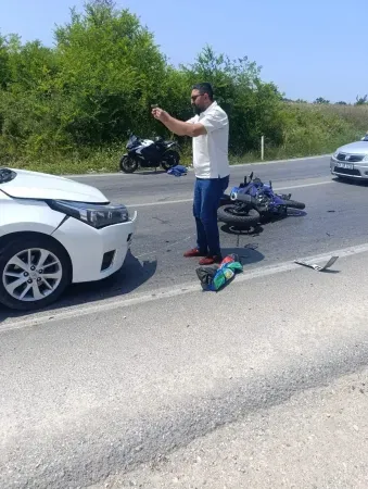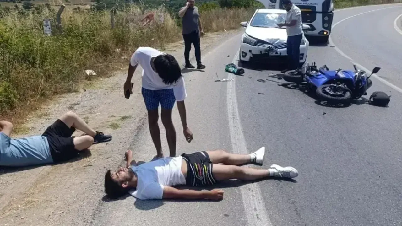 Kocaeli’nin Kandıra ilçesinde meydana gelen trafik kazasında bir motosiklet, karşı yönden gelen otomobille çarpıştı. Şiddetli çarpmanın etkisiyle motosiklet üzerindeki iki kişi yola savruldu.
