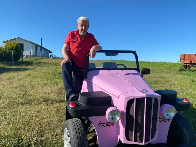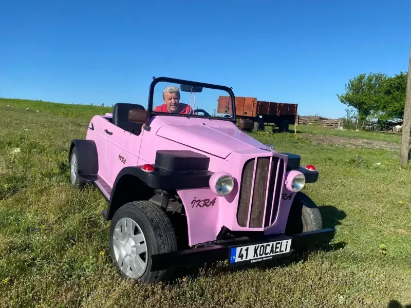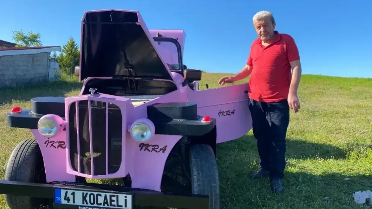 Kandıra ilçesi Ağaçağıl Mahallesi’nde yaşayan, evli ve 2 çocuk babası Ramazan Şentürk, pandemi döneminde uzun yıllardır kurduğu hayalini gerçeğe dönüştürdü. 3 metre 15 santim uzunluğunda, 1 metre 6 santim genişliğinde ve saatte 30-40 kilometre hız yapabilen aracı tamamen kendi imkanlarıyla yapan Şentürk, otomobilin motorunda çapa makinesi kullandı. 15 günde kaportasını tasarlayan Şentürk, klasik görünüm kazandırdığı otomobiline gözü gibi bakıyor. Pembe rengiyle dikkatleri üstüne çeken otomobile Ramazan Şentürk, Arapça’da "Oku" anlamına gelen "İkra" ismini verdi.