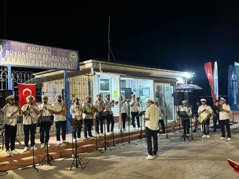 Kocaeli Büyükşehir Belediyesi Mehteran ve Bando Takımı, ‘İlçe Selamlama Konserleri’ kapsamında Karamürsel İskelesi’nde sahne alarak unutulmaz bir geceye imza attı. Mehteran Takımı’nın seslendirdiği seçkin eserlerin yanı sıra, Bando Takımı tarafından 30 Ağustos Zafer Bayramı için hazırlanan özel repertuar ile vatandaşlar eşsiz bir akşam yaşadı.