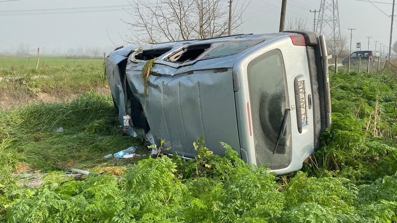 41 AN 315 plakalı Peugeot marka araç, yol kenarındaki tarlaya savrularak takla attı.