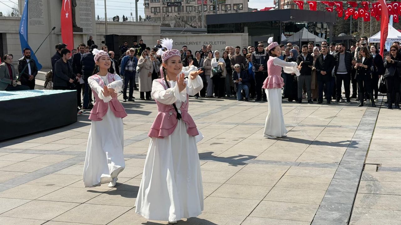 İlimizde Nevruz Bayramı, renkli görüntüler eşliğinde kutlandı. Kocaeli Valiliği İl Kültür ve Turizm Müdürlüğü koordinasyonunda düzenlenen program, farklı kurumların iş birliğiyle Kent Meydanı’nda gerçekleştirildi. Mehteran takımının karşılamasıyla başlayan etkinlikler, protokol konuşmalarının ardından dinleti ve gösterilerle devam etti. Program kapsamında Lezginka, Kırgız ve Türkmenistan dansları sahnelenirken; kopuz ve dombra dinletileri ile Nevruz şiirleri dinletildi. Azerbaycan ve Türkmenistan’a özgü ezgiler de meydanda yankılandı. Etkinliğe Kocaeli Valisi İlhami Aktaş’ın yanı sıra kent protokolü, kurum temsilcileri, öğrenciler ve çok sayıda yurttaş katıldı.
