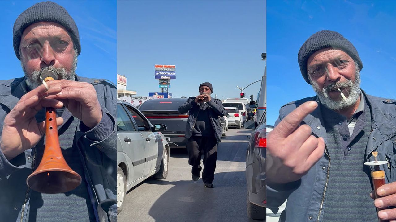 Kentte daha önce cam silen kişilerle gündeme gelen trafik ışıkları, bu kez zurna çalan bir kişinin para talep etmesiyle dikkat çekti.