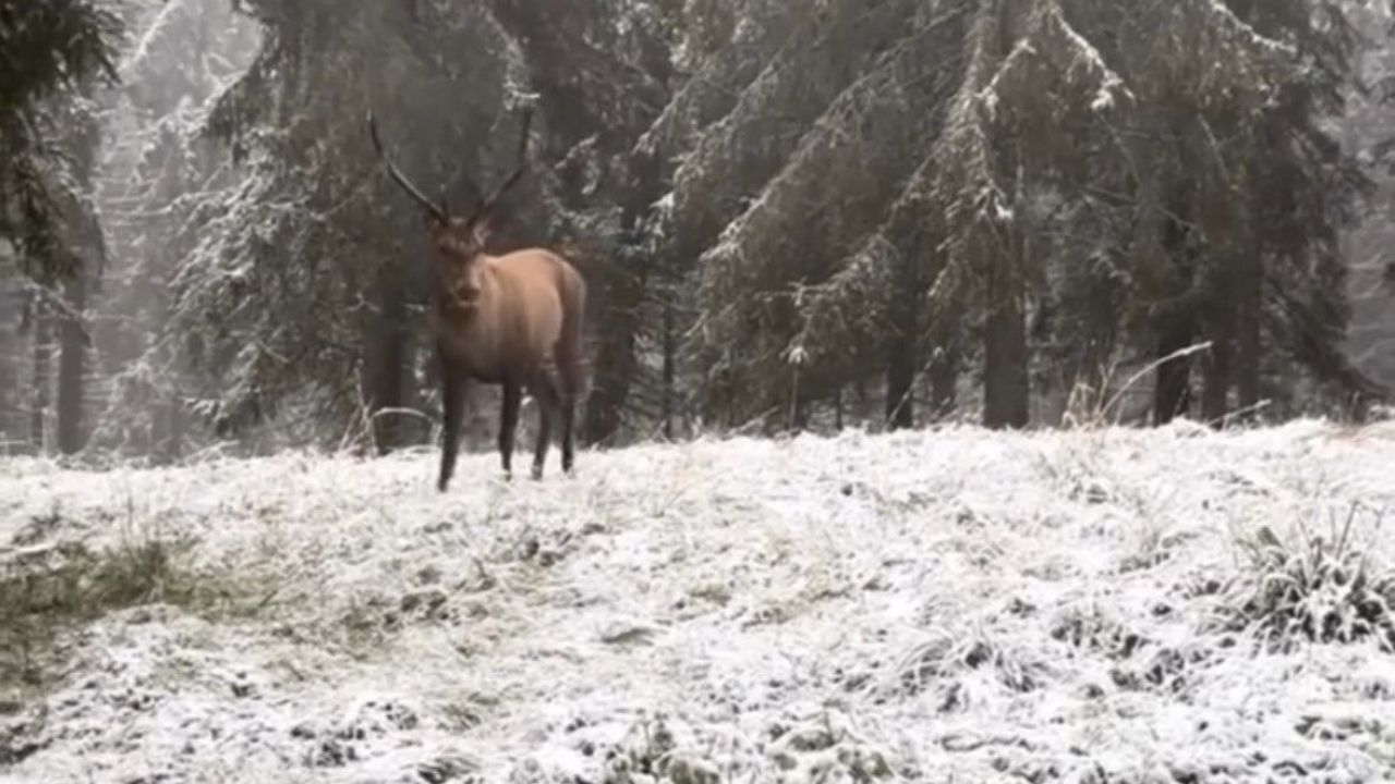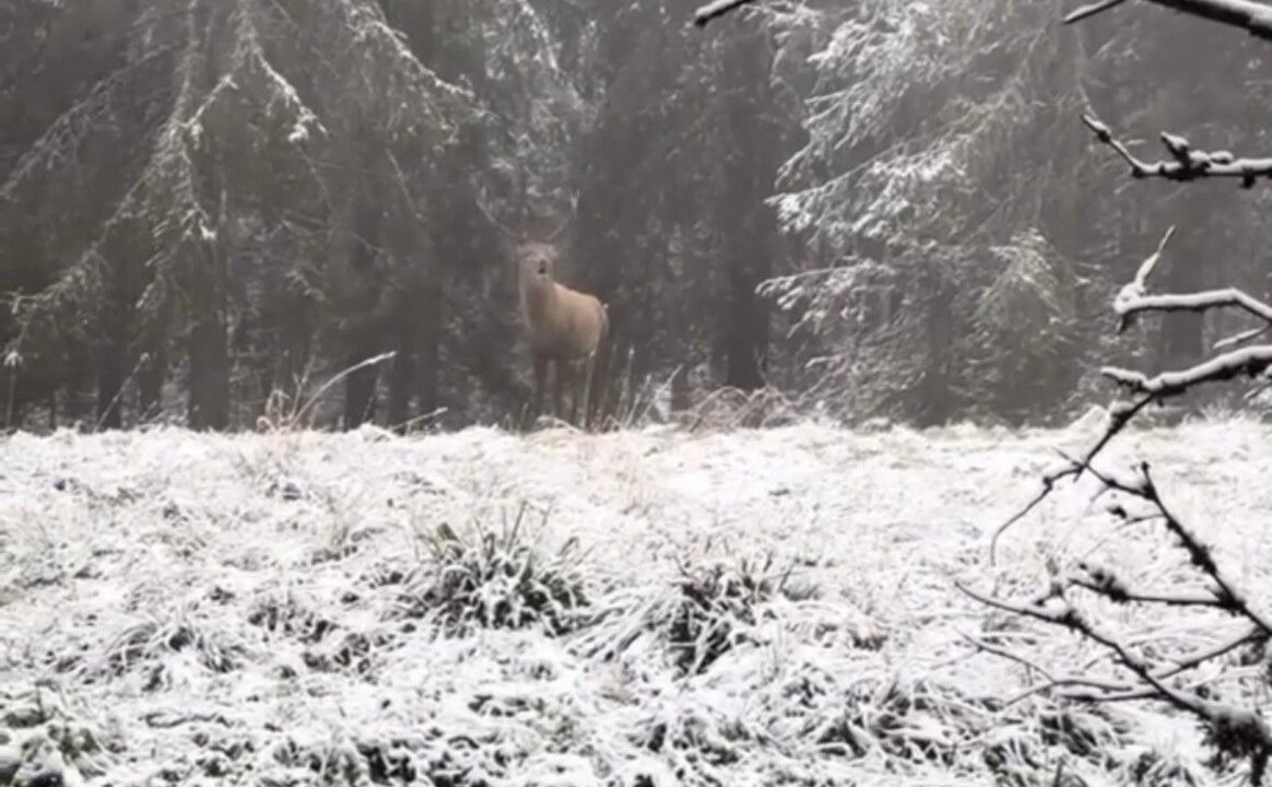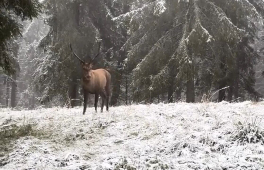 Bolu'nun yüksek kesimlerinde karla kaplı ormanlarda kızılgeyik objektiflere yansıdı. Karların arasında yürüyen geyiğin böğürme anları doğaseverlerin kamerasına takıldı. Soğuk havaların etkili olduğu Bolu'da kızılgeyik görüntülendi. Kar örtüsü üzerinde yürüyen geyiğin, çevreyi inleterek böğürdüğü anlar cep telefonu kamerasına kaydedildi.