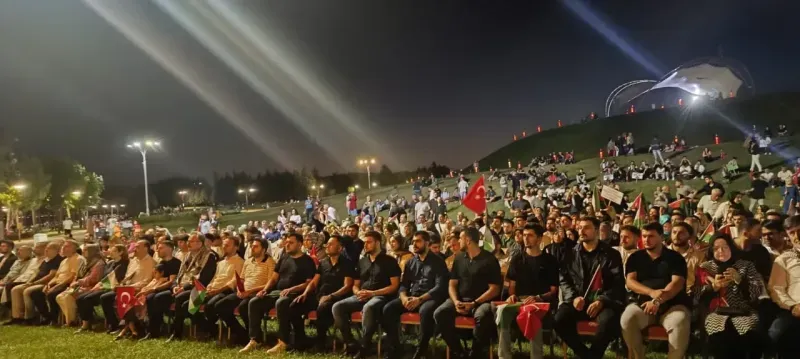 Katılımcılar “Kahrolsun İsrail” sloganları eşliğinde yürüyüş gerçekleştirirken, etkinlik Uçurtma Tepesi’nde gösterilen “Kutsal İşgal: Filistin Topraklarını Gasp Etmek” adlı belgesel ve sonrasında yapılan dualarla sona erdi.