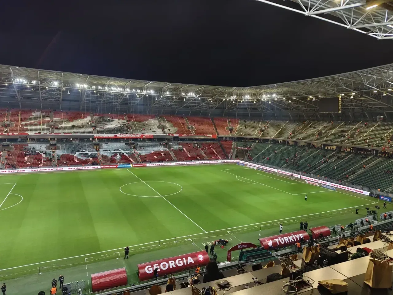 Kocaeli Stadyumu’nda oynanacak olan Türkiye - Gürcistan maçı için stadyumda son hazırlıklar tamamlandı. Bugün saat 21.45’te A Milli Futbol takımımız ile Gürcistan Milli Takımı ile Kocaeli Stadyumu’nda oynanacak olan maç için stadyumda son hazırlıklar tamamlandı. Milli takımımız için ayrıca özel bir kareografi de oluşturuldu.