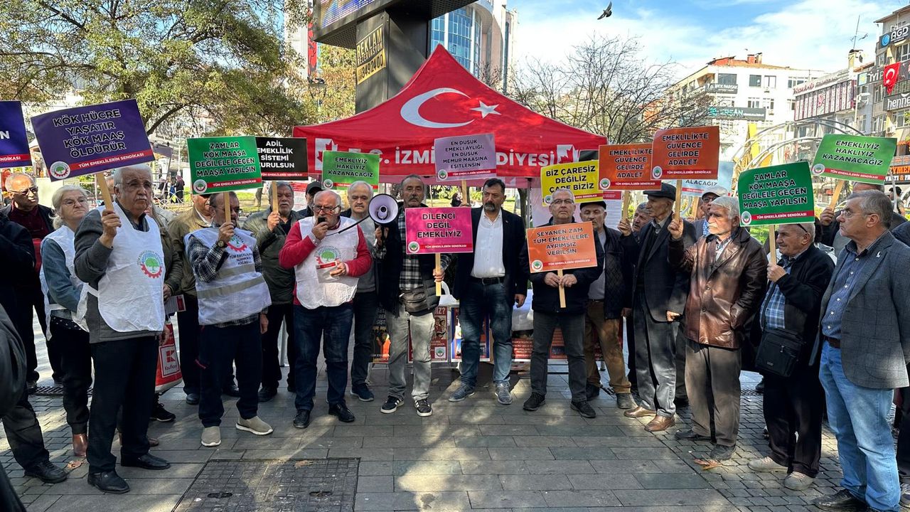 Tüm Emekli Sen Kocaeli Şube Başkanı Selahattin Pehlevan şube adına yaptığı açıklamada 5510 sayılı yasanın aylık bağlama oranlarının düşürüldüğünü belirterek konuşmasında şu sözlere yer verdi: “Emekliye hak değil, lütuf muamelesi yapan anlayış, sadakayı sosyal politika haline getirdi. Seçimden seçime verilen ikramiyeler ve sosyal yardımlar, bağımlı bir toplum yaratmanın aracına dönüştü. Tüm Emeklilerin Sendikası, “Biz sadaka değil, hakkımızı istiyoruz” dedi.